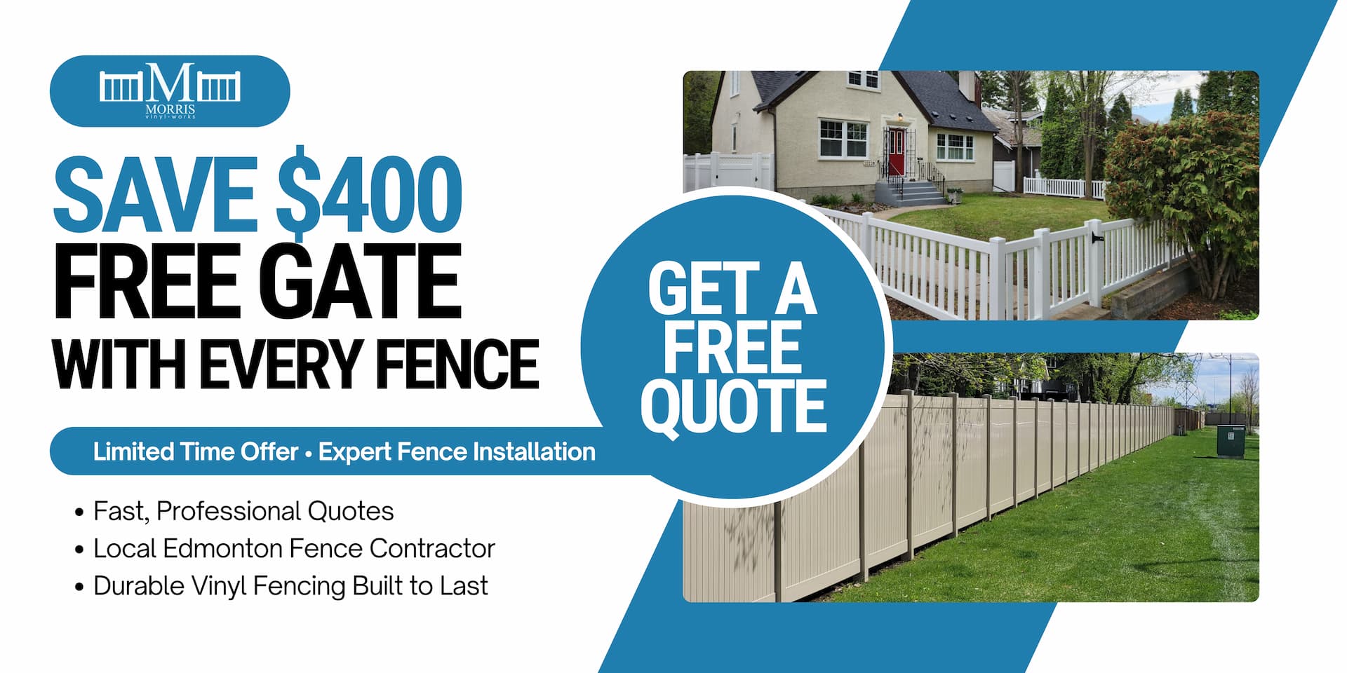 Get a free quote and a free gate with every new fence. Morris Vinyl Works installs durable, low-maintenance vinyl fencing in Edmonton.